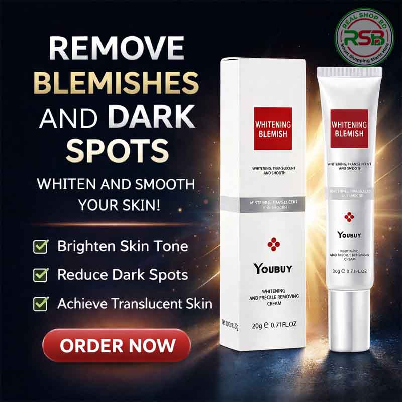 মেসতা, ফ্রেকলস (Freckles) কিংবা ত্বকের কালচে দাগ নিয়ে চিন্তিত? ত্বকের হারানো উজ্জ্বলতা ফিরিয়ে আনতে এবং দাগহীন মসৃণ ত্বকের জন্য ব্যবহার করুন ‘YOUBUY Whitening and Freckle Removing Cream’। এটি একটি উন্নত ফর্মুলার ক্রিম, যা ত্বকের গভীরে প্রবেশ করে দাগের বিরুদ্ধে কাজ করে এবং আপনাকে দেয় সতেজ, লাবণ্যময় ও ইভেন টোনড (Even toned) স্কিন।